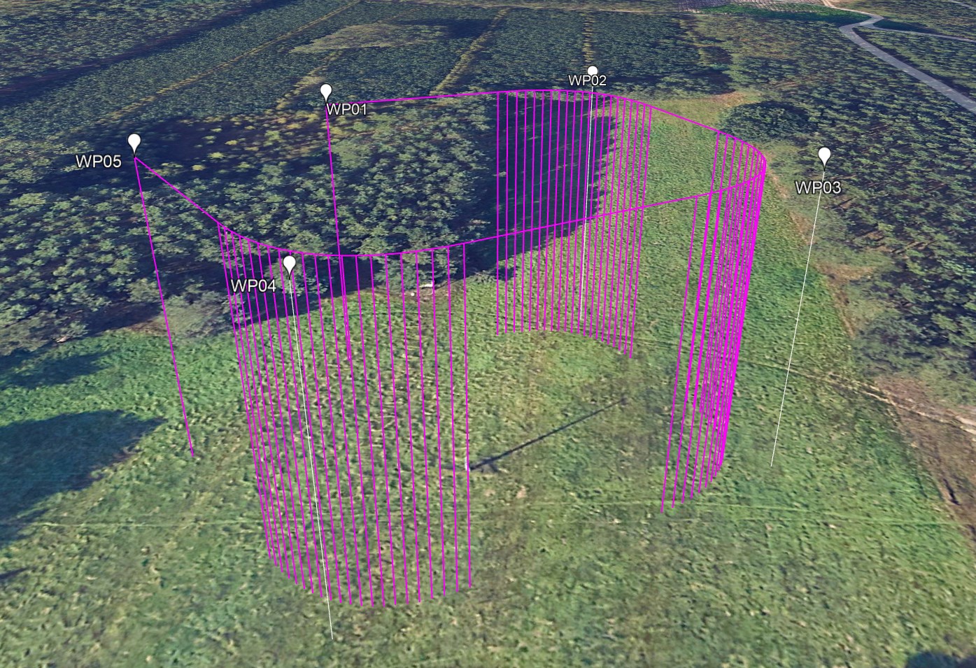 Extend path to ground: The flight path is always drawn. This option visually extends the flight path to the ground. This can also be toggled on and off within Google Earth Pro.